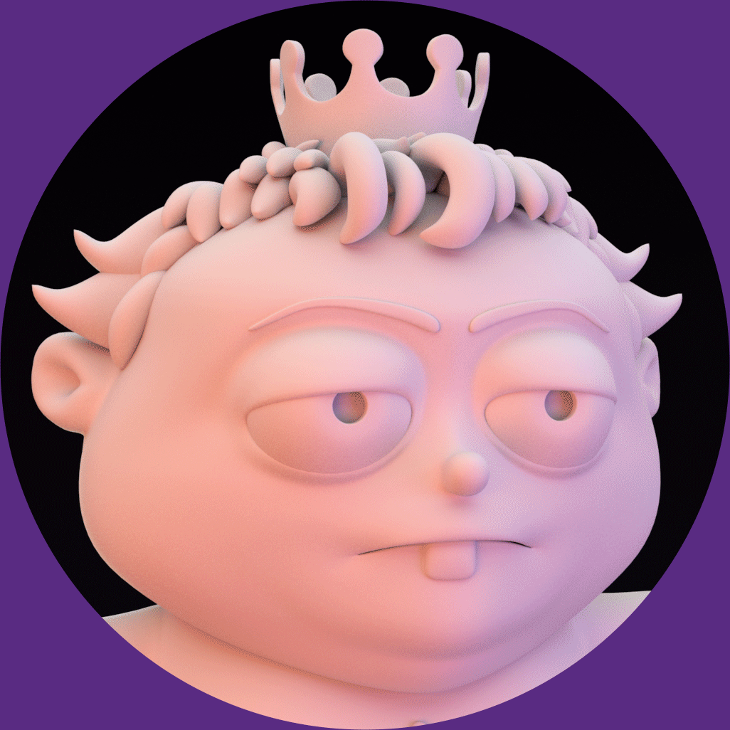 The Baby King is the main character of a student film project entitled The Softest Blanket in All of Dingledorf, on which I worked as the lead modeler. He's everything one would expect a baby king to be: impatient, demanding, and, most of all, clumsy. In fact, his blundering is what sets the story in motion. After an unfortunate accident causes the Baby King to lose his favorite blanket, he calls upon his subjects to bring him the softest blanket in all the land. The winner would receive a knighthood, while those who failed would be punished severely. This call to action attracts people from all different walks of life. Namely, a sailor with a big mouth, a buff guy who thinks strength is always the answer, and an elderly woman whose best friend is an alpaca. Will the Baby King get the blanket of his dreams, or will history be doomed to repeat? (Character created by Xan Poulsen, reference sheet drawn in collaboration with Xan Poulsen.)